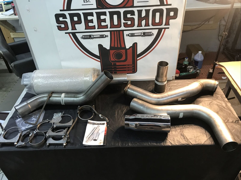 Open box item. Kit looks to be complete with all the main pieces and hardware. Still unused with only minor marks and blemishes from being moved around. The exhaust tip still looks like new, it was wrapped well.